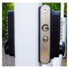 - Auto-latching – close the gate and the latch bolt latches into the gate frame. To open the gate, enter the code and turn the handle