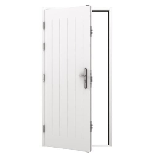 A modern Cottage style steel door featuring our trademark Hooply 19-point locking mechanism. Fully galvanised, pre-assembled door & frame with mineral wool infill, multi-point locking, handles, cylinders and seals.