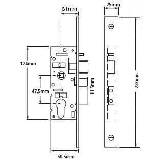 This Union euro sashlock case with a backset of 31mm is ideal for metal doors with its small size.
